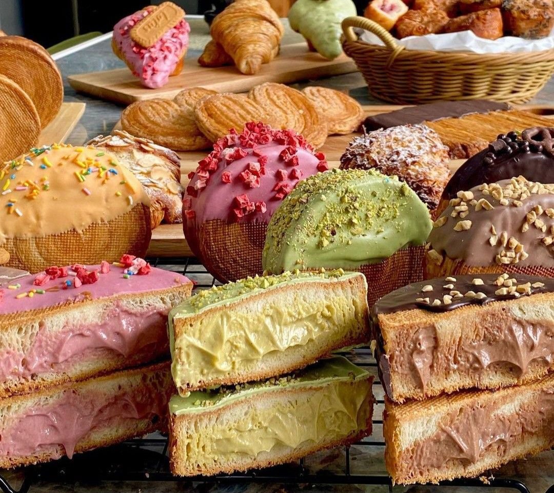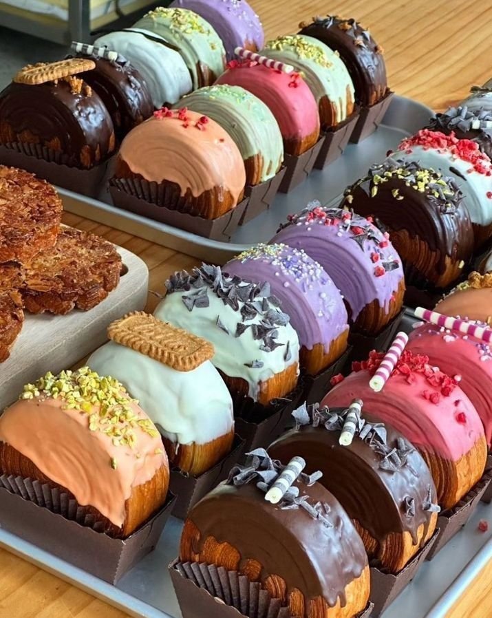 The range includes signature formats such as New York Rolls, Craquelin, contemporary éclairs, domes, premium filled cookies, drinks and take-away boxes.